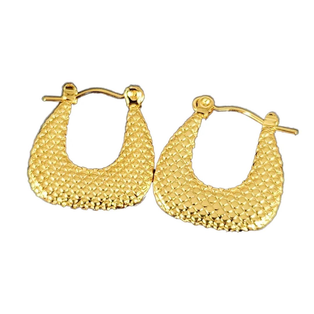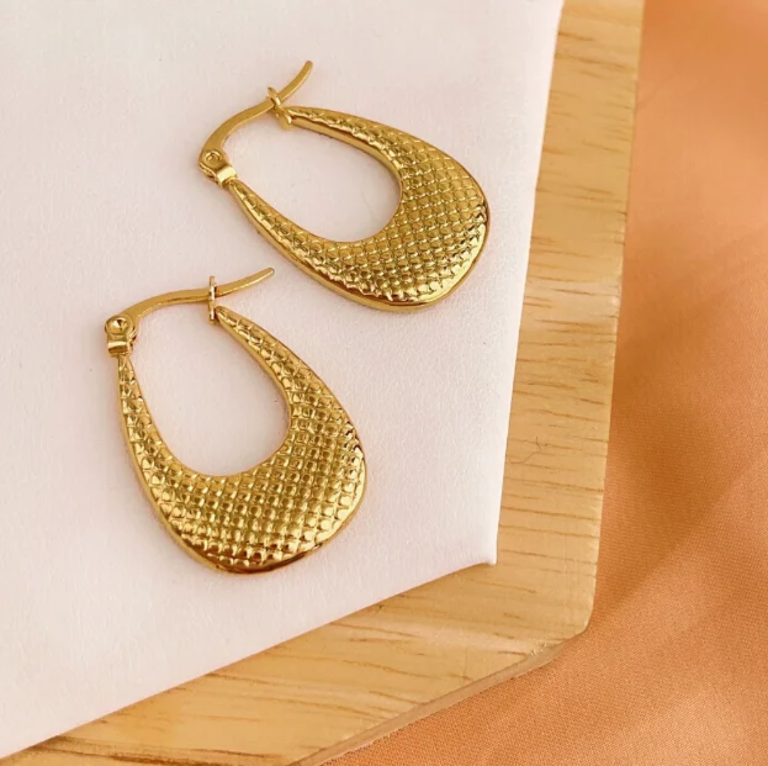 Realizzati con acciaio inox e placcati in oro, questi orecchini sono eleganti e resistenti. Aggiungi un tocco di classe ai tuoi outfit con questi gioielli di alta qualità che non si ossideranno mai. Splendore e durata garantiti.