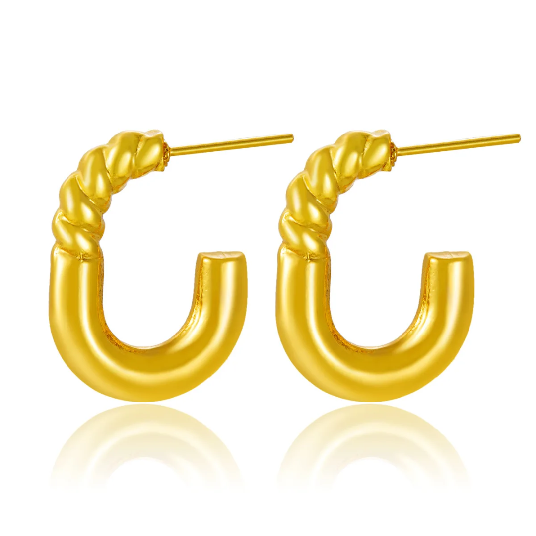 Gli orecchini in acciaio inox placcato oro sono resistenti, brillanti e senza nichel. Realizzati in materiale di alta qualità, questi orecchini ti permetteranno di completare ogni outfit con un tocco elegante e moderno. L'uso dell'acciaio inox garantisce una lunga durata e una facile pulizia. Perfetti per chi cerca qualità senza compromessi.